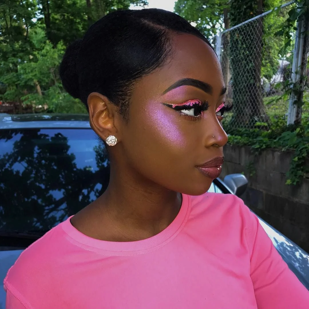 My first impression of Chelsie Worthy when I met her in the talent lounge at Beautycon was that her highlighter was poppin’! I had an immediate hunch that she was a makeup artist; besides the gorgeous illuminating streaks across her cheekbones, her fake eyelashes, eyeliner, and brows were also all on fleek. What I didn’t know was that Worthy isn’t a normal makeup artist. She came up with the unique concept to make “traptorials,” where she lip syncs to rap songs as she expertly applies cosmetics. Not to mention, fun graphics pop up on the screen to match the vibe as well! Worthy also has her own line of makeup called Stardust, which specializes in making a wide range of highlighters. The products are made in different hues that match the spirit of the delicious treats from brands that Stardust collaborates with. I’m talking Marble Caramel Chews, Hershey’s White Chocolate Bars, and Pink Lemonade Sour Candy! Before you reach for the refrigerator, check out my interview with Chelsie below to learn all about Stardust and of course, what her top makeup tip is (hint: it’s not what you’d think!).